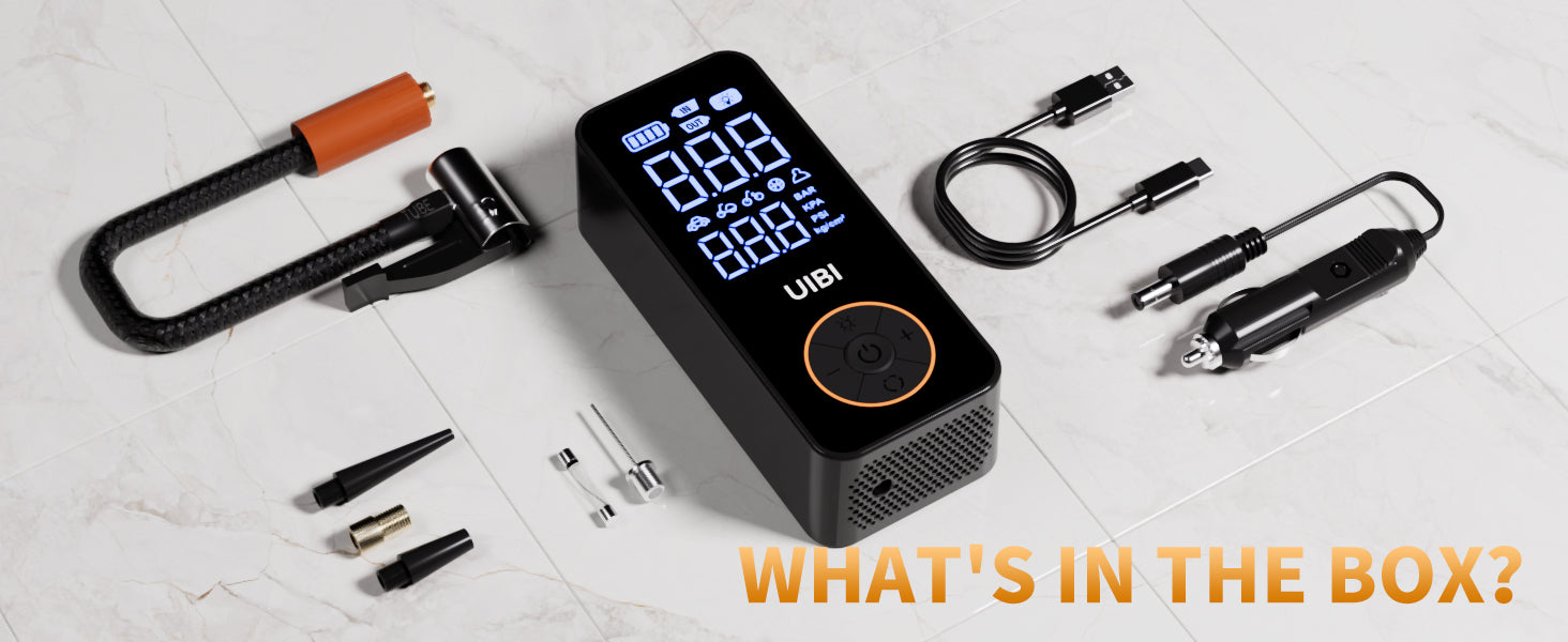 - Complete Package: Includes compressor, nozzles, ball pin, charging cables, air tube, storage bag, manual.