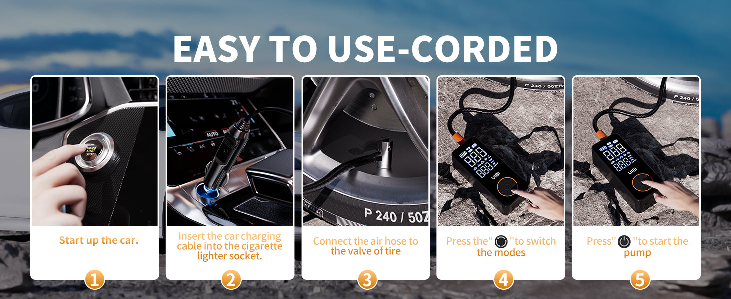 - Intuitive Operation: Five preset modes, real-time tire pressure gauge, prevents overinflation.
