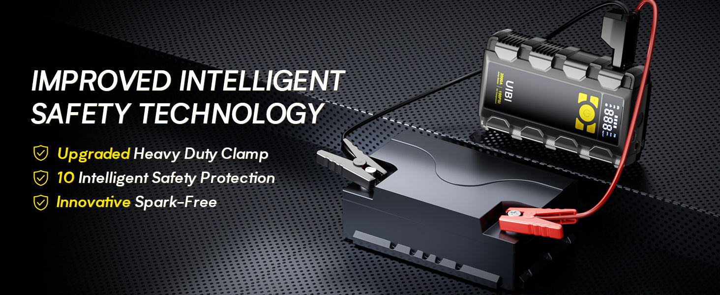 【Built-In Intelligent Chip】The UIBI Smart chip offers short-circuit protection, overheating protection, reverse polarity protection, overload protection, overcharge protection, and spark protection. Automatic connection detection remind you incorrect operations and sparks. The heat dissipation design enhances the strength of the jump starter, resulting in a 30% increase in the performance of the car starter. Additionally, the product holds a UL-2743 certification for added assurance.