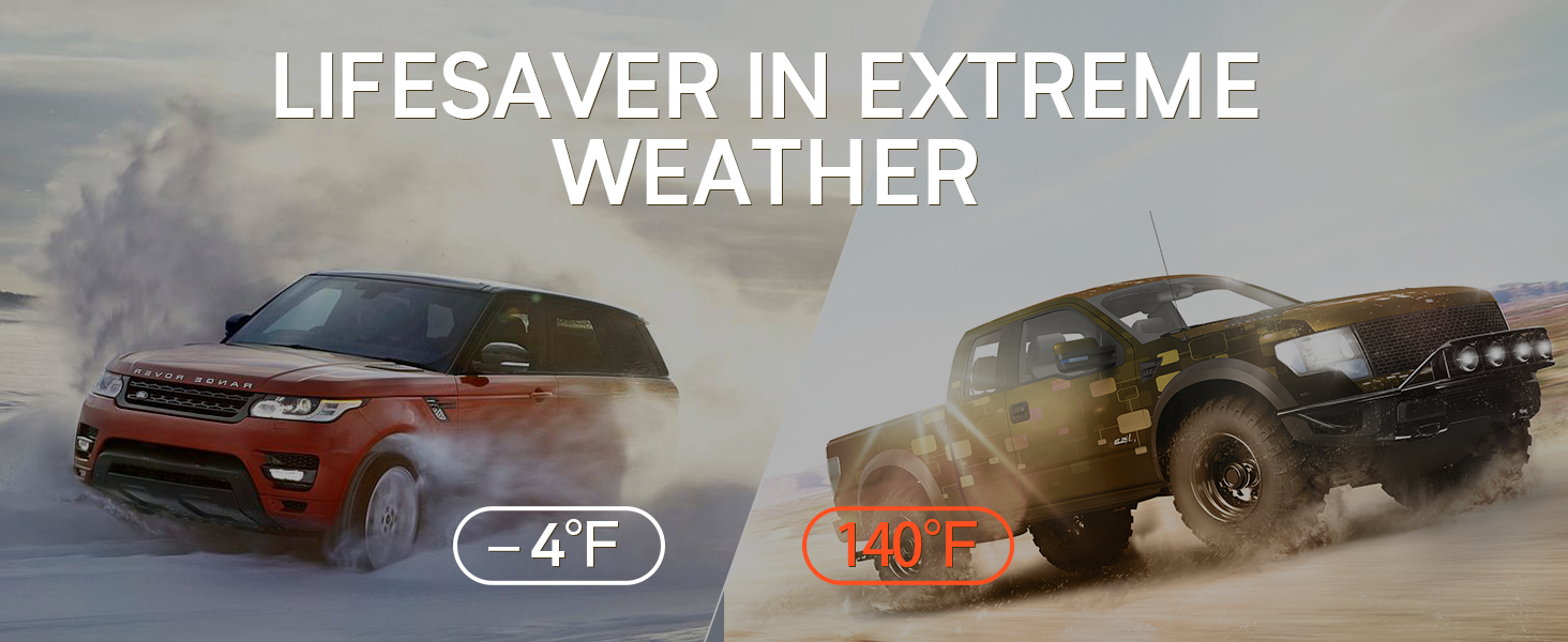 - Powerful & Reliable: 2500A jump starter works instantly in extreme weather, starts 12V vehicles.